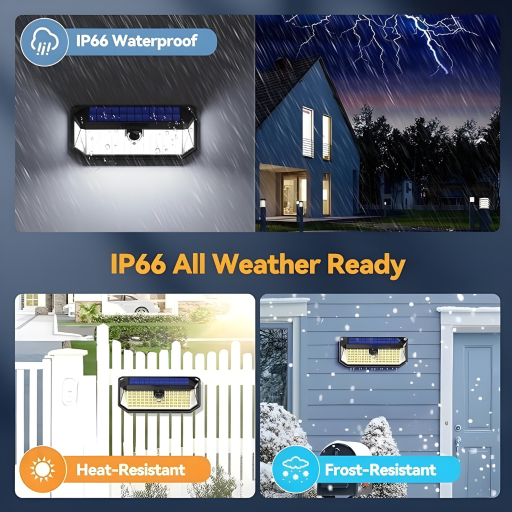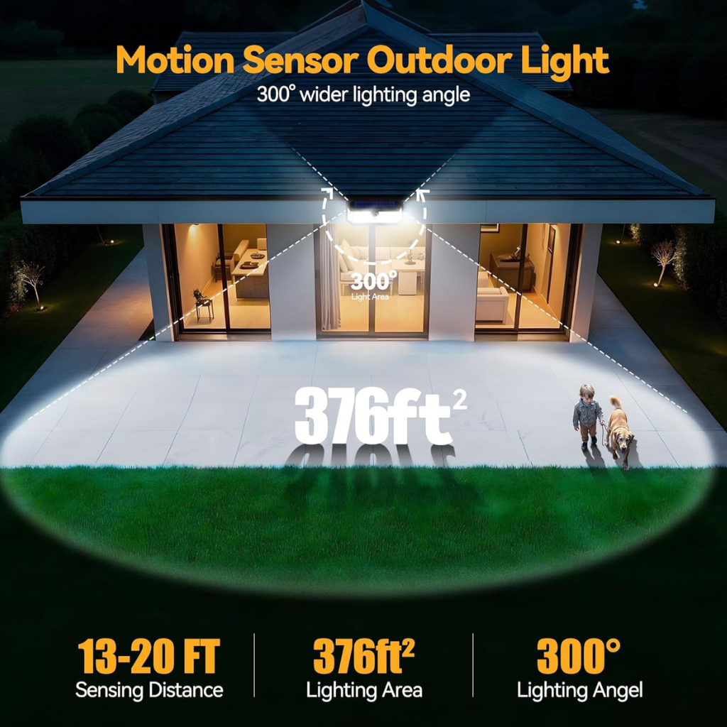 The Solar Outdoor Waterproof Lights provide wide beam outdoor lighting through solar energy collection and motion sensing. With 416 integrated LED units, it projects broad coverage across many types of surfaces. Its weather-resistant design and self-sufficient energy collection make it suitable for regular use in open or high-traffic zones.