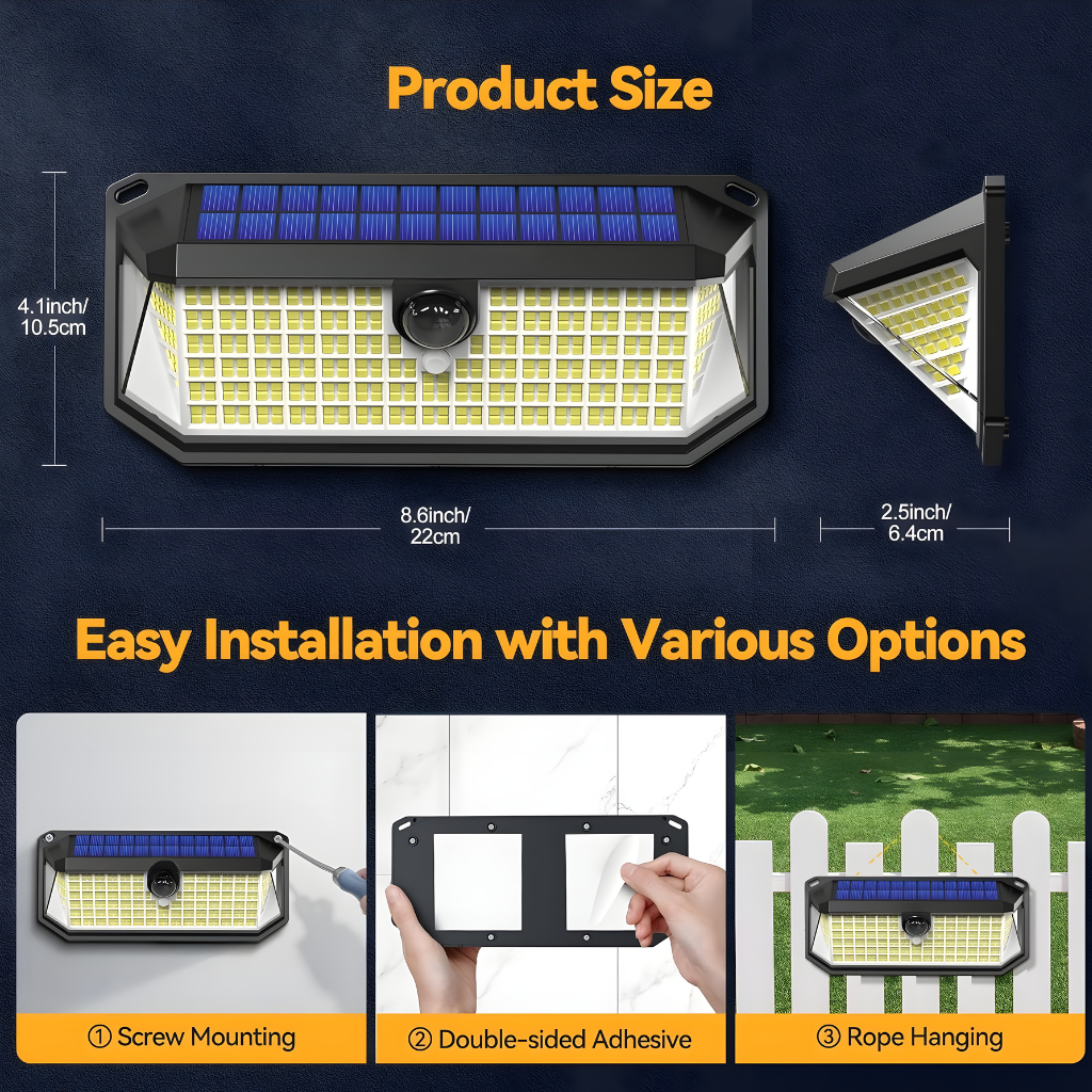 This 416 LED Solar Outdoor Waterproof Lights fixture operates without manual control and activates only when movement is present. It saves daylight energy, supports year-round usage, and helps improve visibility across home surroundings. For those seeking an energy-efficient way to illuminate large or dark outdoor zones, this solution balances design and daily function.