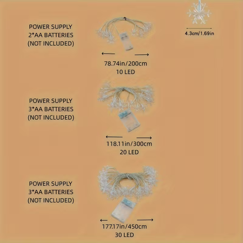 - Snowflake Design: Each Battery-Powered Snowflake LED String Light is shaped like a snowflake, adding a winter charm to your decorations.