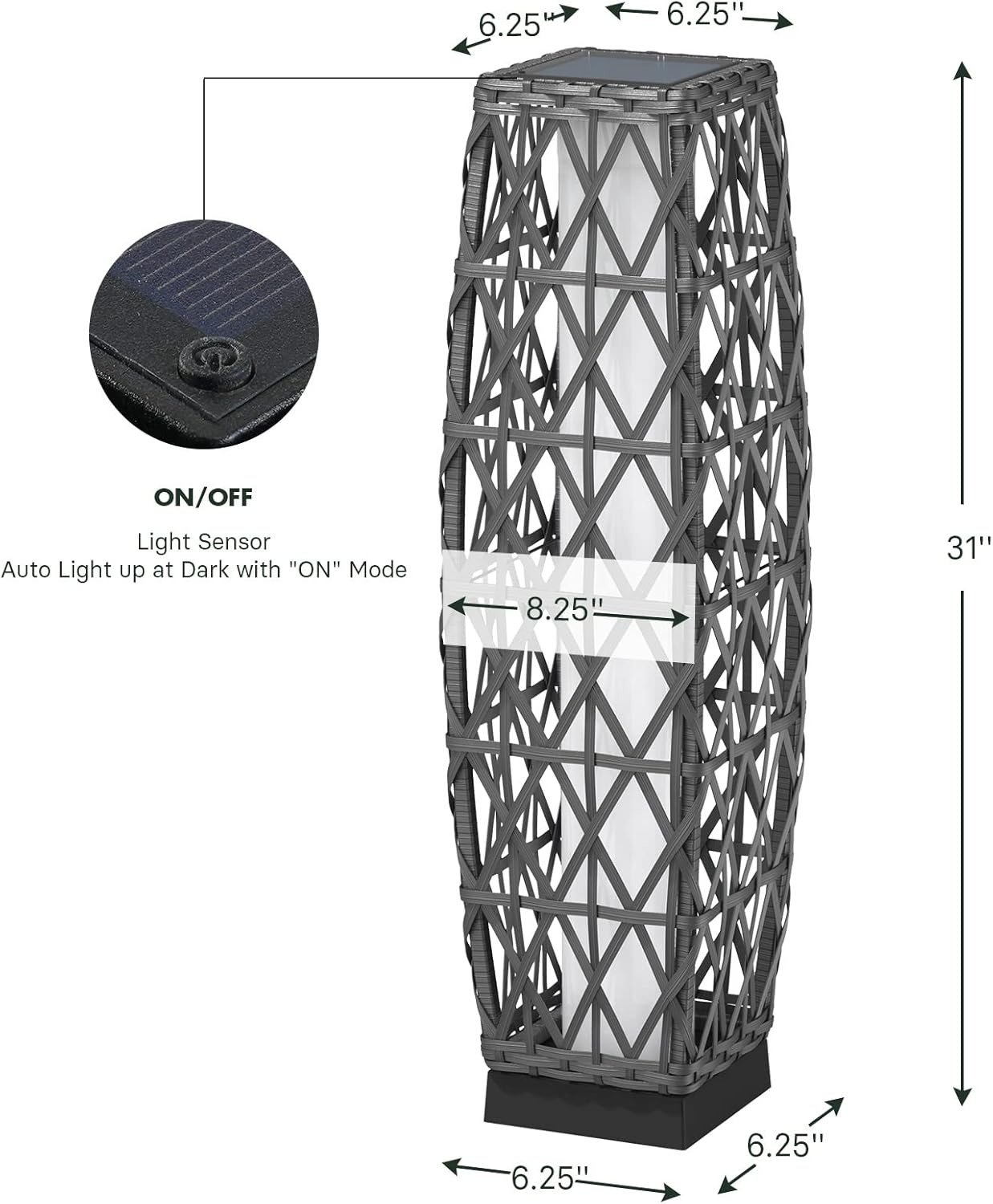 Bring soft evening glow to outdoor settings with the Outdoor Solar Wicker Floor Lamp. Built for outdoor use, this standalone lighting option adds quiet charm to patios, gardens, balconies, and decks. With a wicker-style pattern and an efficient solar panel on top, this piece supports nighttime outdoor use without requiring plugs or wires.
