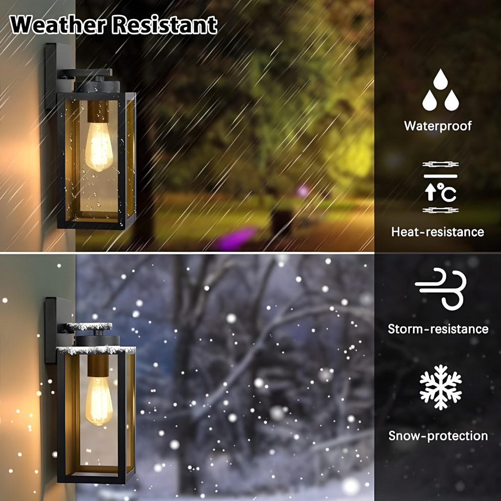 These Outdoor Wall Light Fixtures are a straightforward choice for entry illumination. The clean lines fit many homes. The glass shade supports bright, useful light. The E26 socket allows easy bulb selection and future changes. The pair delivers consistent results at doors and driveways. With simple care and periodic checks, the fixtures provide steady service across seasons.