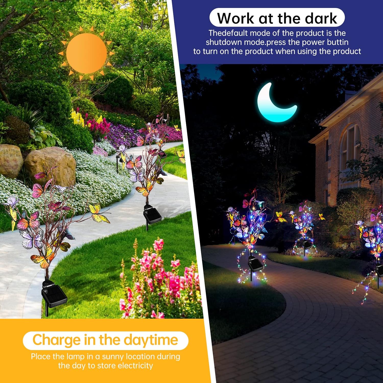 A built-in sensor detects ambient brightness. The tree remains inactive during daylight or bright conditions while collecting solar energy, then activates its lighting pattern during low-light evening conditions.