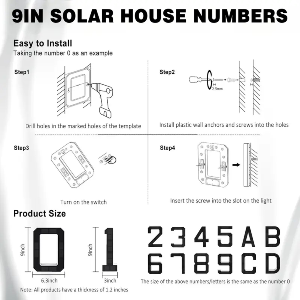 Installation can be completed within minutes. The package includes a positioning cardboard template, screws, and wall anchors. Simply select a location with sufficient sunlight exposure, align the template, and locked the sign using the included hardware.