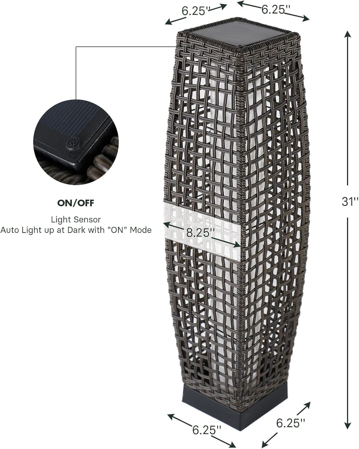 The Wicker Lantern Patio Light provides outdoor lighting with a practical solar function and a water-resistant structure. It operates without an electrical connection and delivers consistent output across multiple outdoor applications.