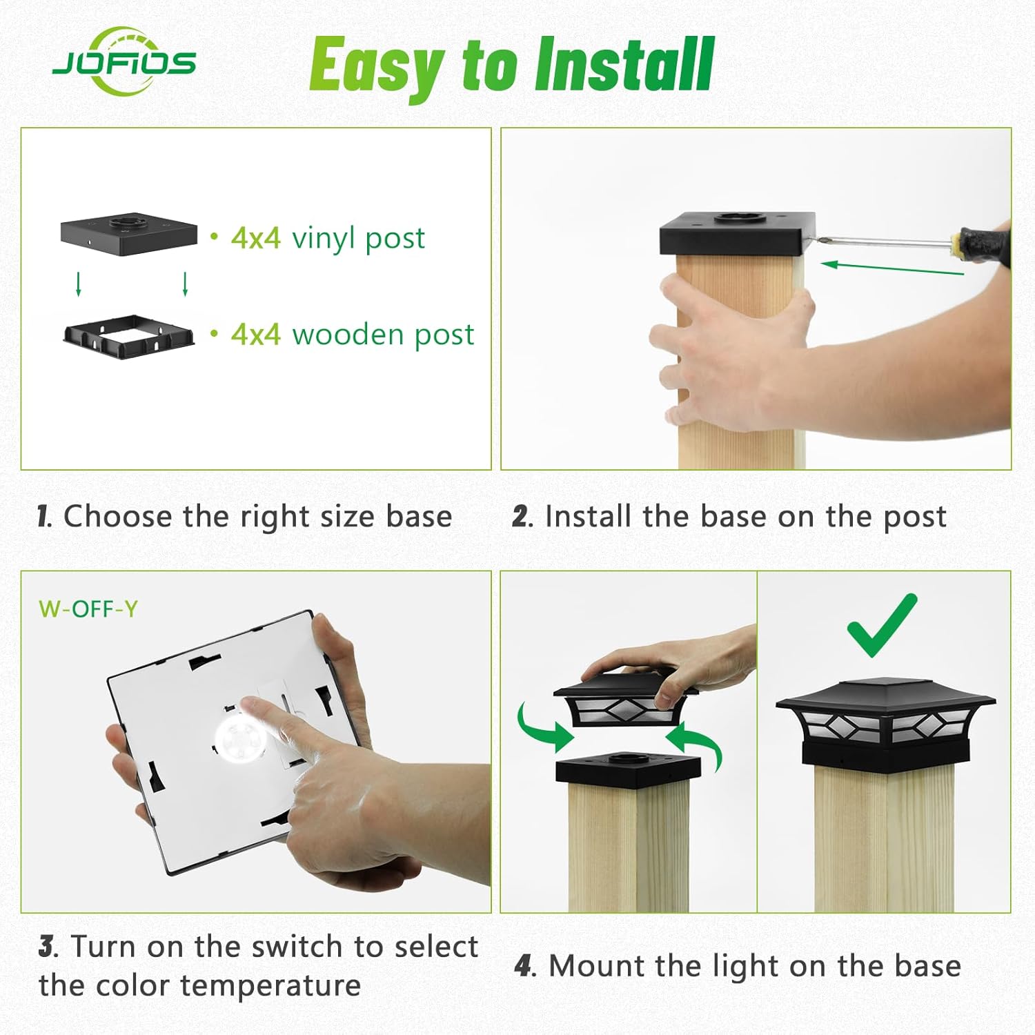 Built to fit standard post caps, these Fence Post Lights require minimal effort to install. Simply place over vertical posts, and the built-in design aligns the structure for a stable hold.